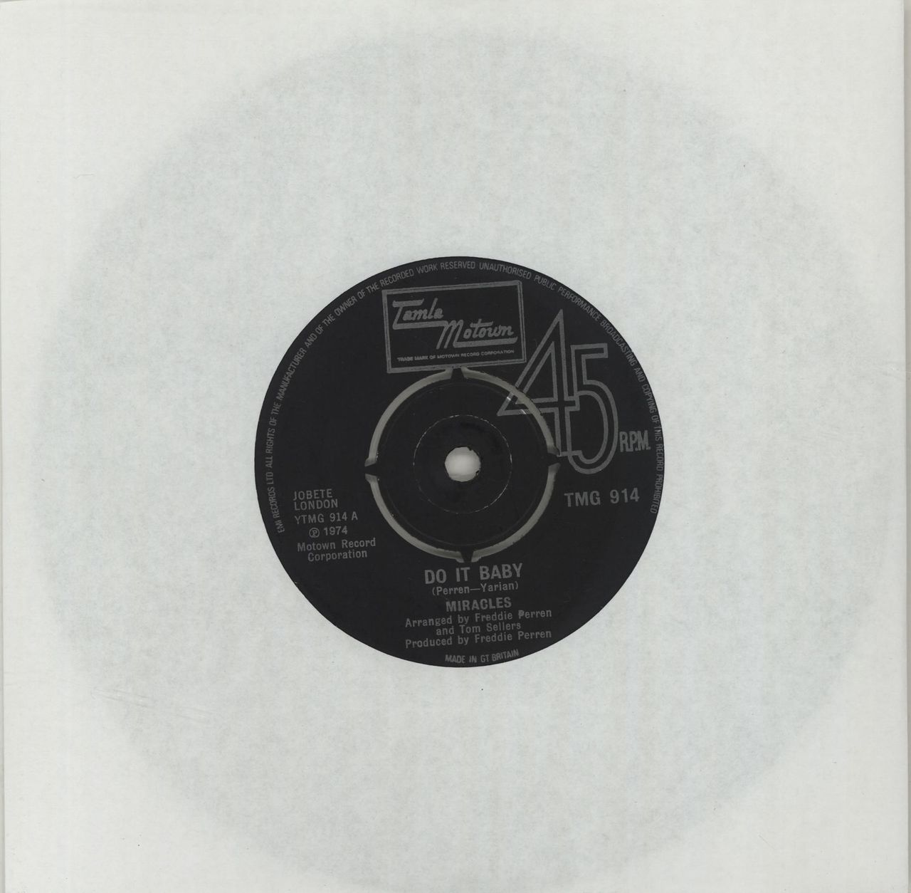 MIRACLES Do It Baby (1974 UK 7" vinyl single with four prong