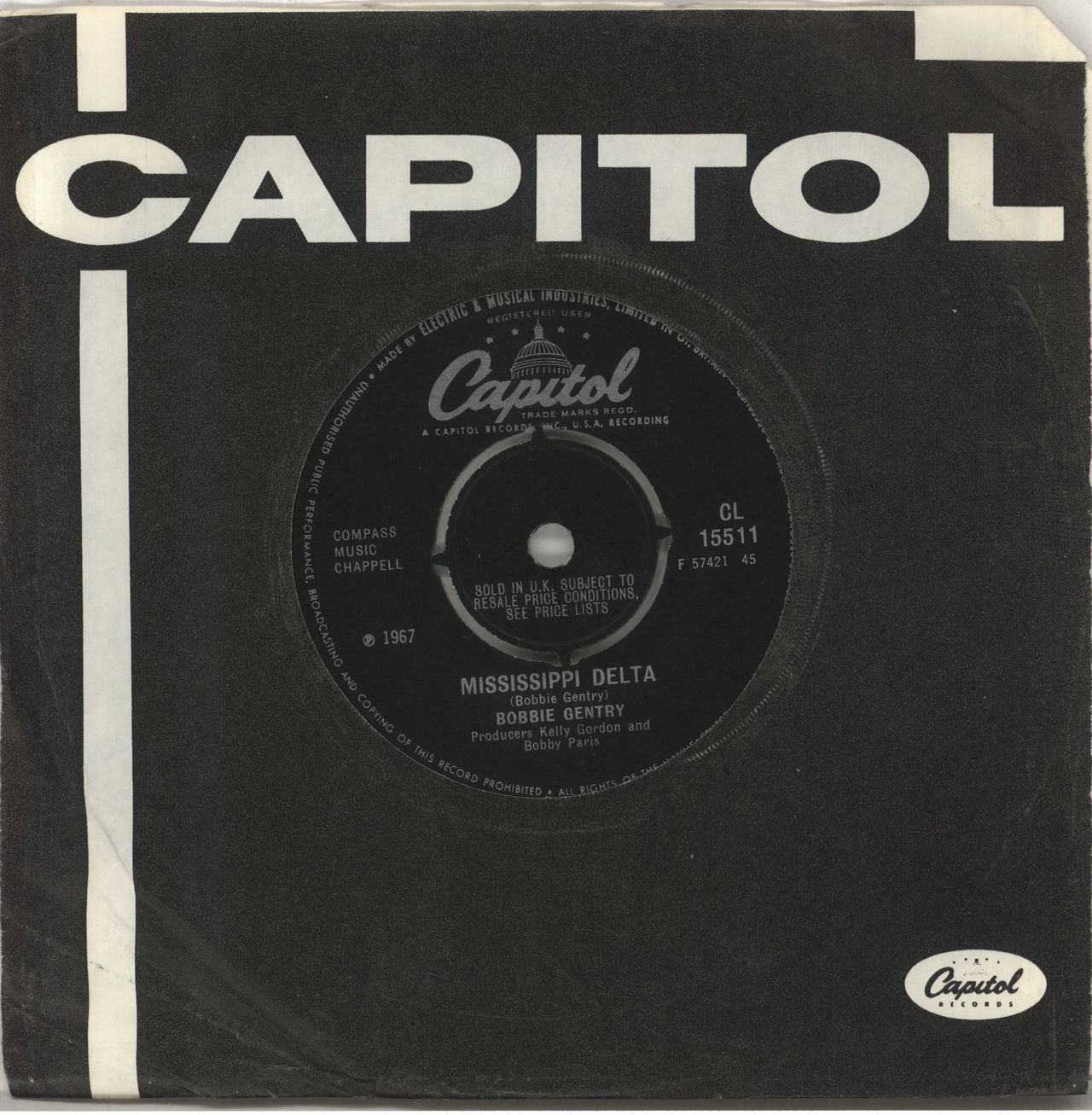 BOBBIE GENTRY Ode To Bille Joe (1967 UK 7" vinyl single with intact four prong centre, also featuring Mississippi Delta, Capitol die-cut paper sleeve CL15511)