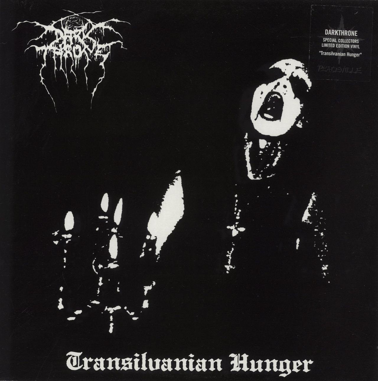 DARKTHRONE Transilvanian Hunger (2002 UK limited edition 8-track remastered vinyl LP reissue of the 1994 fourth studio album by Norwegian black metal band. Housed in a glossy picture sleeve with lyric inner. The sleeve remains in Excellent condition with a little negligble wear and the vinyl remains in Near Mint condition VILELP43)