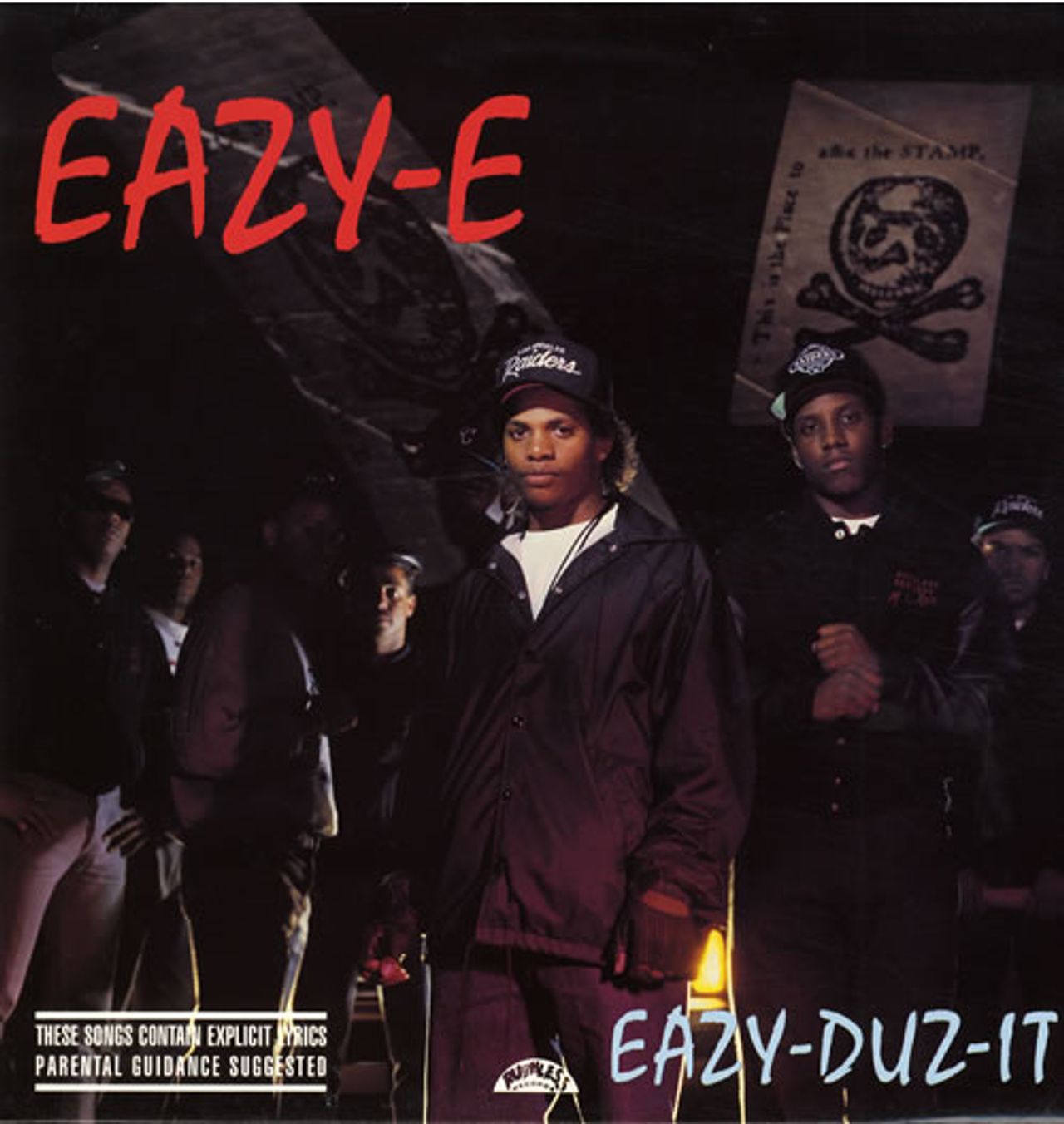 EAZY-E Eazy-Duz-It (1988 UK 12-track solo LP, including contributions from N.W.A. cohorts Dr Dre, Dj Yella & Ice Cube. The picture sleeve is graded VG with some edge scuffing and light creasing to one corner, the vinyl looks barely played BRLP535)