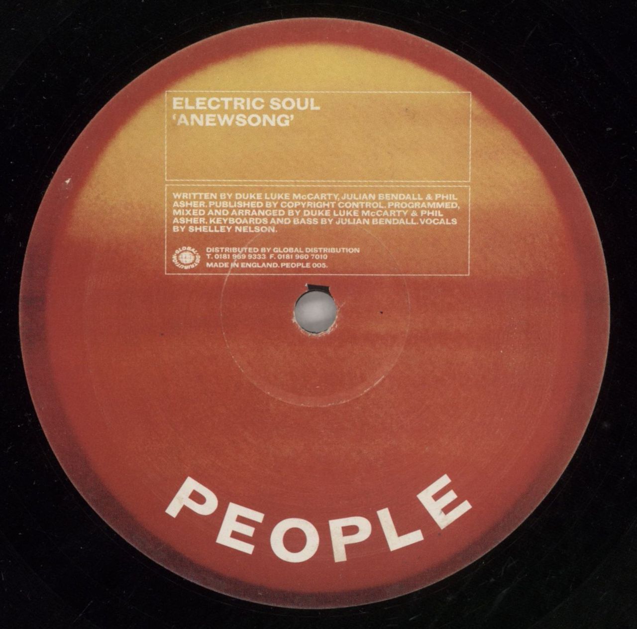 ELECTRIC SOUL Anewsong (1988 UK 2-track 12" vinyl single, includes Here Come One, plain die-cut sleeve. The vinyl is Excellent with few signs of play PEOPLE005)