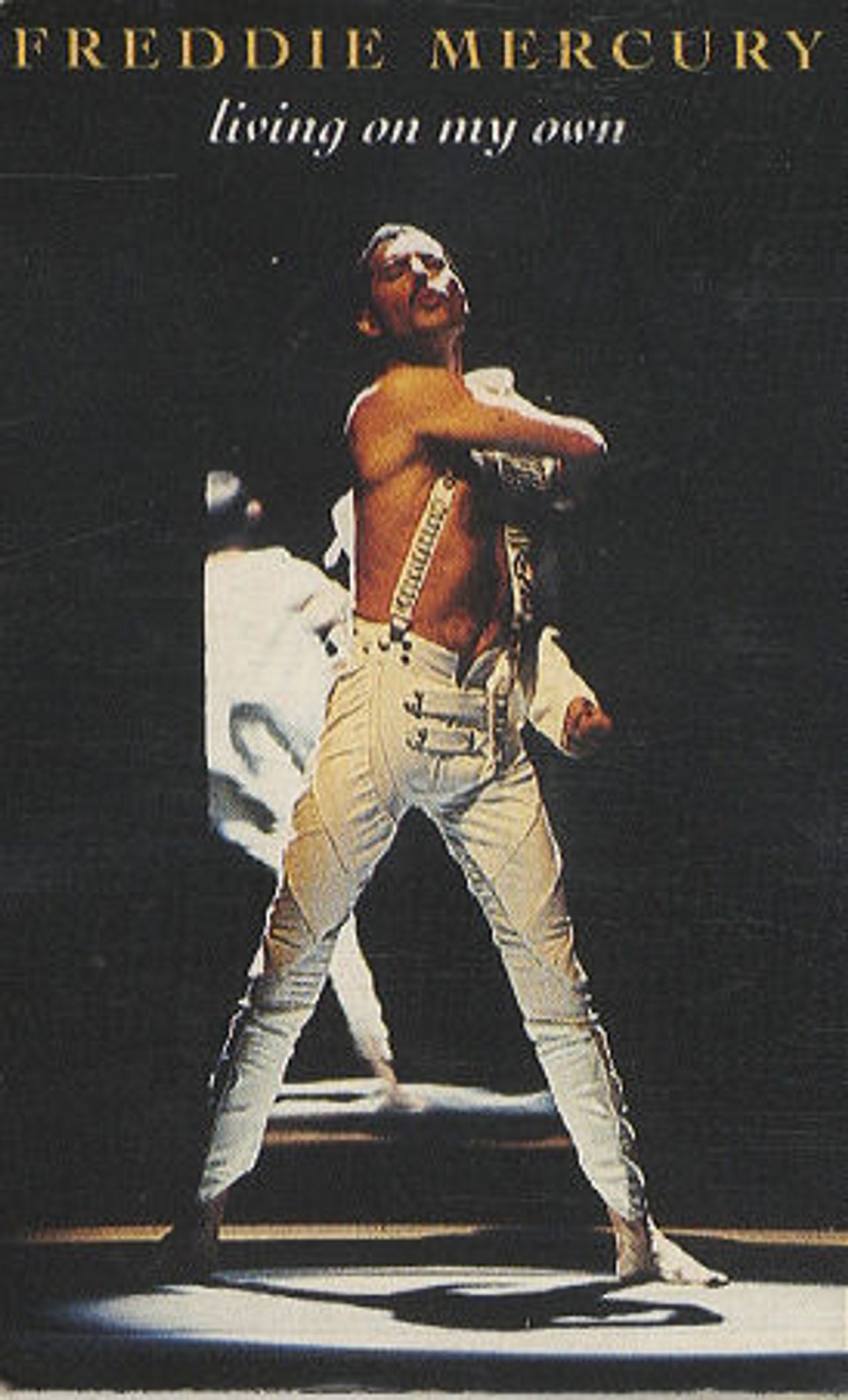 FREDDIE MERCURY Living On My Own (1993 UK limited edition cassette single, featuring the Radio & Album mixes, with both songs repeated either side, housed within picture card slipcase sleeve TCR6355)