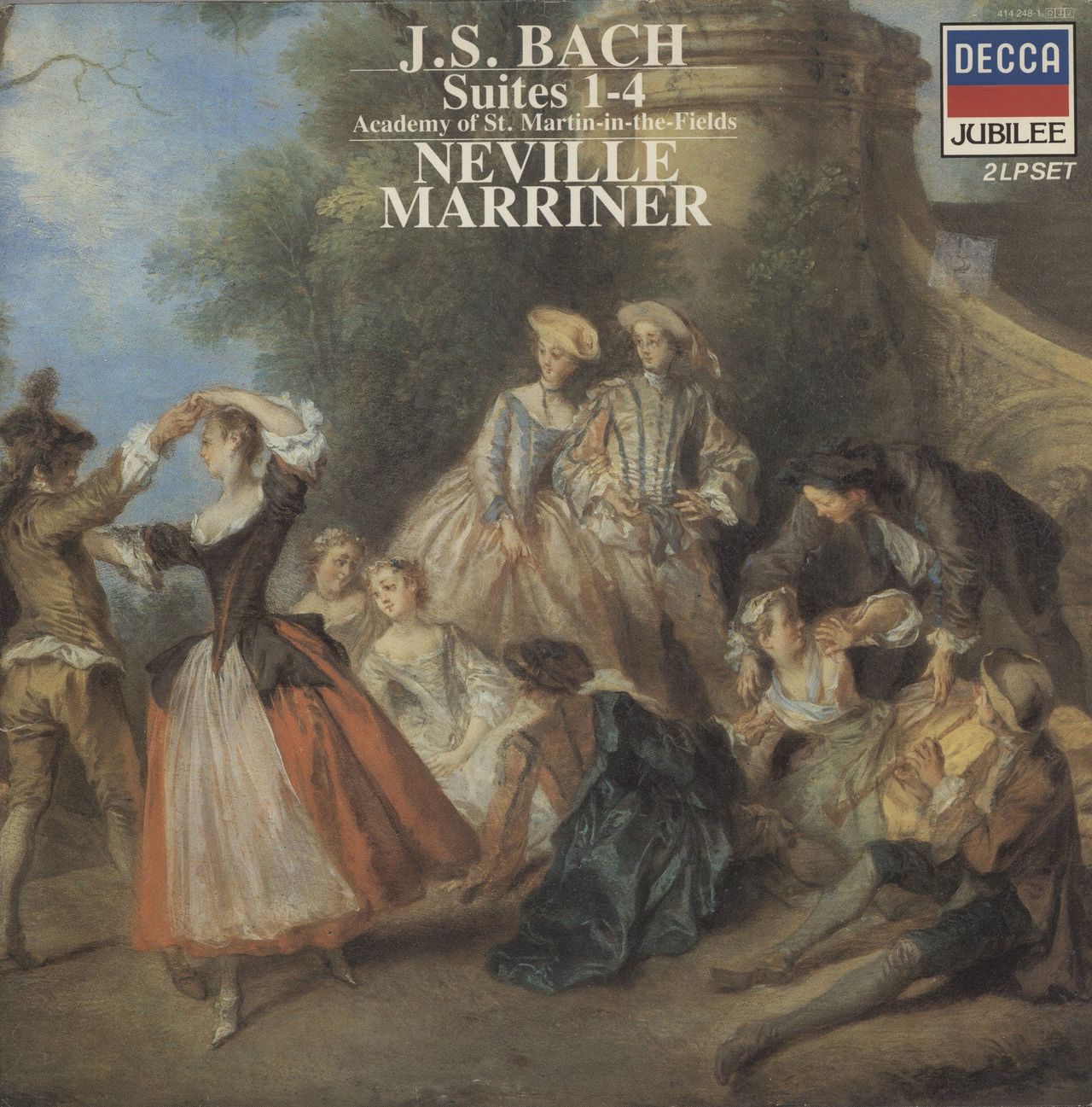 JOHANN SEBASTIAN BACH Suites 1-4 (1985 UK issue of the 1971 21-track stereo double LP, with Neville Marriner and the Academy Of St Martin-in-the-Fields, gatefold sleeve with extensive sleevenotes. The sleeve shows a little shelfwear with smallresidual sticker to front whilst the vinyl is graded Excellent)