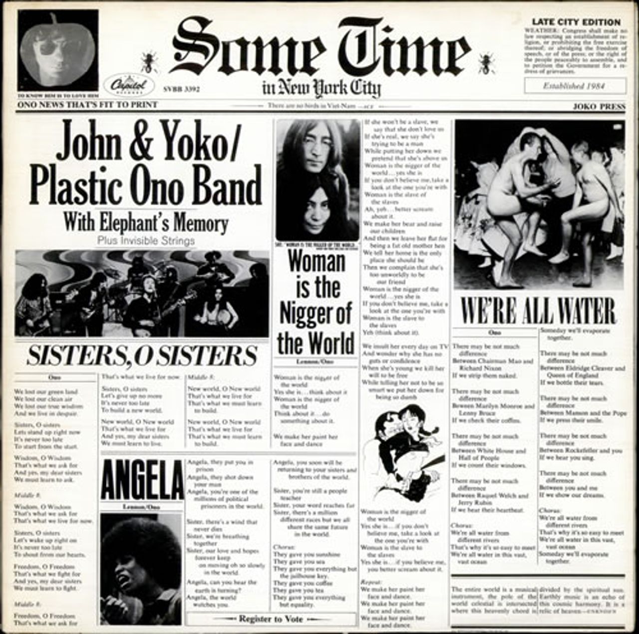JOHN LENNON & YOKO ONO Some Time In New York City (1972 US 16-track double LP, including tracks recorded live at the Lyceum, London in December 1969 and with the Mothers Of Invention at the Fillmore East in 1971, gatefold picture sleeve with credit inners. Despite some splits in the inner sleeves, both vinyl discs are clean & look barely played SVBB3392)