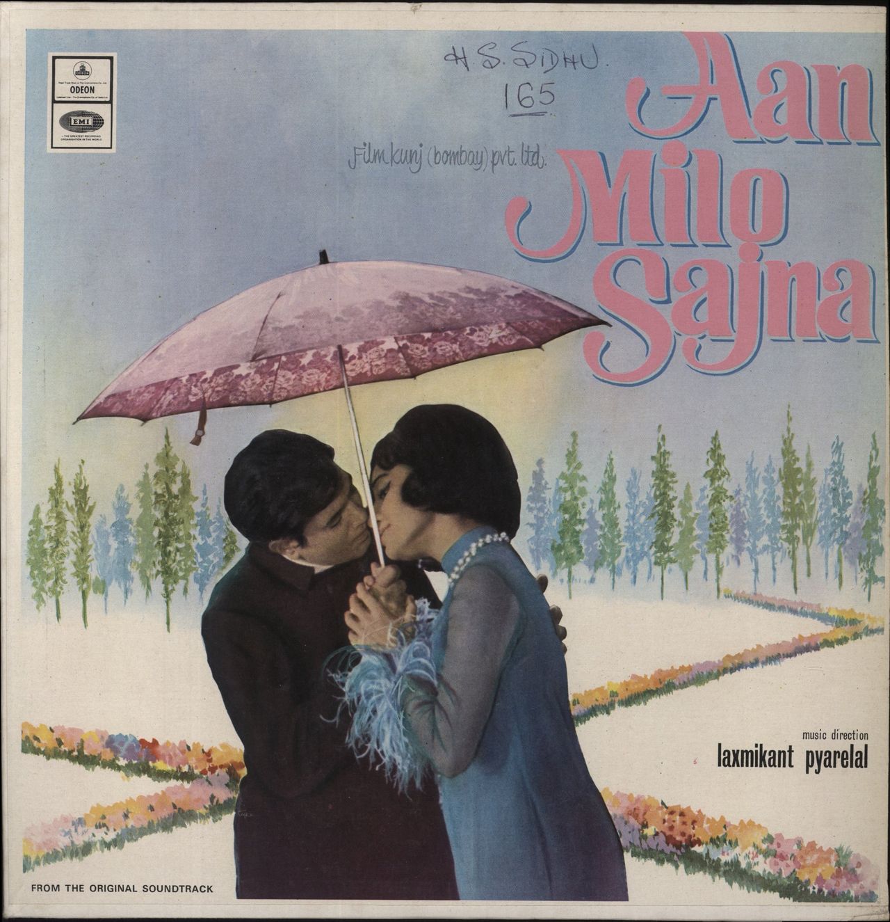 ORIGINAL SOUNDTRACK Aan Milo Sajna (1970 Indian 6-track vinyl LP on the black Odeon label, Laxmikant-Pyarelal's movie score with performances by Asha Bhosle, Lata Mangeshkar & Kishore Kumar, pasted picture sleeve. The sleeve has a name annotation to the front & back; whilst despite a name annotation to the label, the vinyl is Excellent with very little sign of play 3AEX5328)