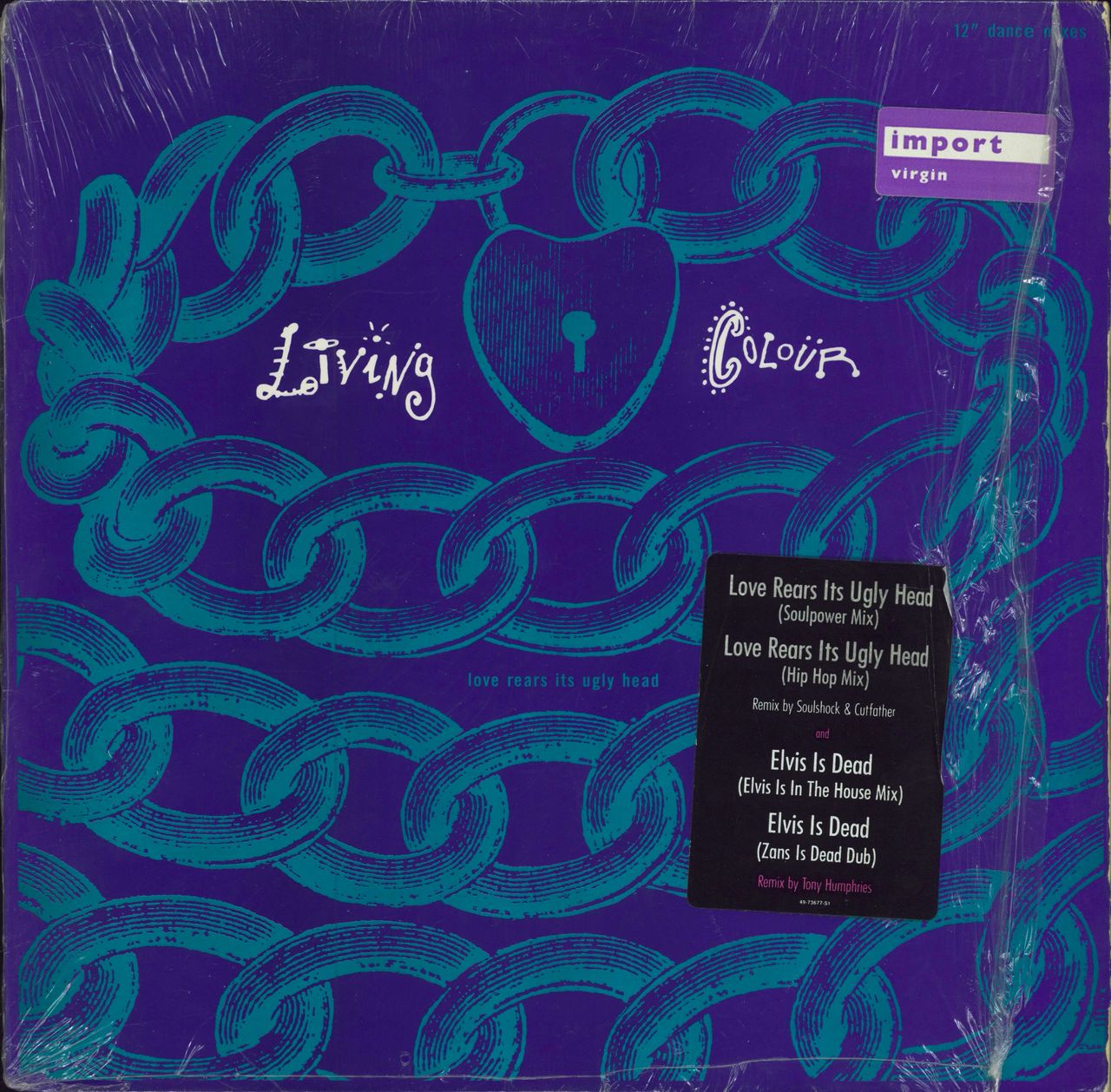 LIVING COLOUR Love Rears Its Ugly Head (1990 US 4-track 12" vinyl single, includes Soulpower Mix, Hip Hop Mix as well as Elvis Is Dead Elvis Is In The House Mix and Zans Is Dead Dub, picture sleeve still in its song-hype stickered shrinkwrap)