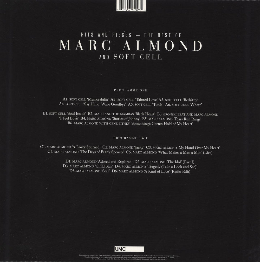 MARC ALMOND AND SOFT CELL Hits And Pieces - The Best Of... (2018 UK limited edition 23-track double LP pressed on 180gram Pink & Black Vinyl - A comprehensive collection which gathers together hits from his solo years and as part of Marc And The Mambas and Soft Cell, including such landmarks as the era-defining Tainted Love and Say Hello Wave Goodbye, Marc's definitive cover versions of Jacky and The Days of Pearly Spencer and smash hit collaborations with Bronski Beat [I Feel Love] and Gene Pitney [Something's Gotten Hold Of My Heart]. The glossy gatefold picture sleeve comes with the picture inners and the two vinyl discs look barely played)