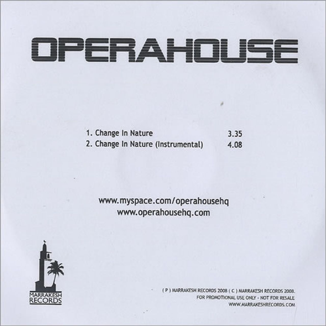 OPERAHOUSE Change In Nature (2008 UK 2-track promotional CD-R