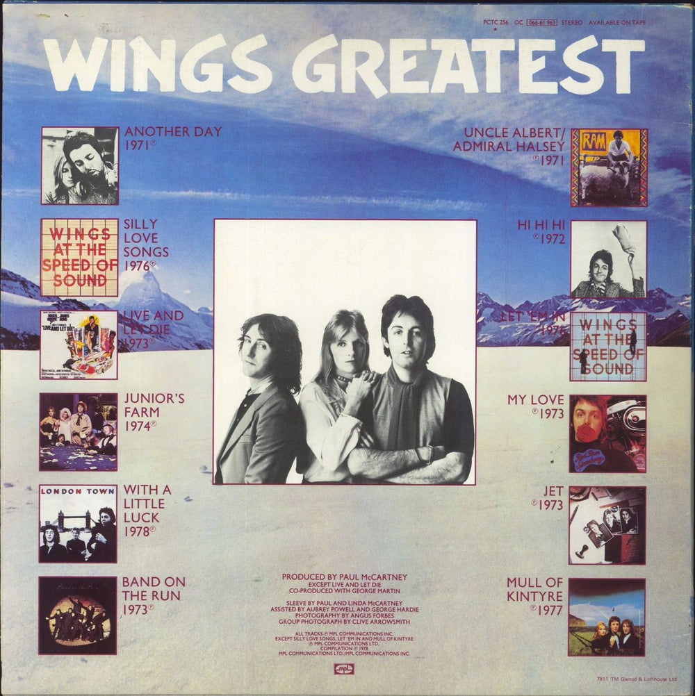 WINGS Wings Greatest (1978 UK 12-track LP compilation of classic hits from Paul & co, complete with the illustrated inner & the double-sided 33" x 23" fold-out poster. The picture sleeve is Excellent with minor shelf wear/edge scuffing & the vinyl is clean & in Excellent condition with little play PCTC256)