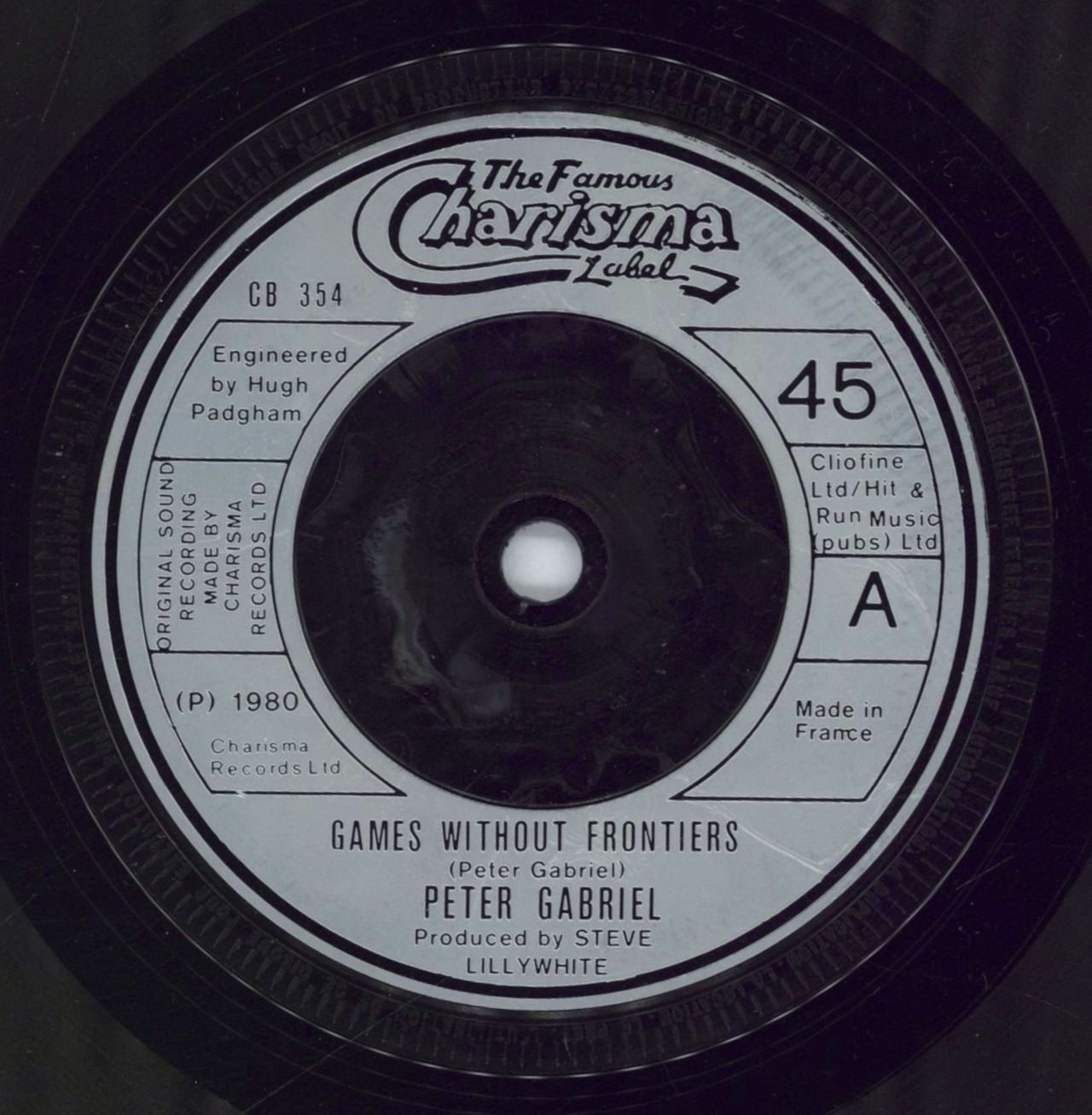PETER GABRIEL Games Without Frontiers (Classic 1980 UK 3-track injection moulded 7" vinyl single, also including The Start & I Don't Remember, plain die-cut paper sleeve CB354)