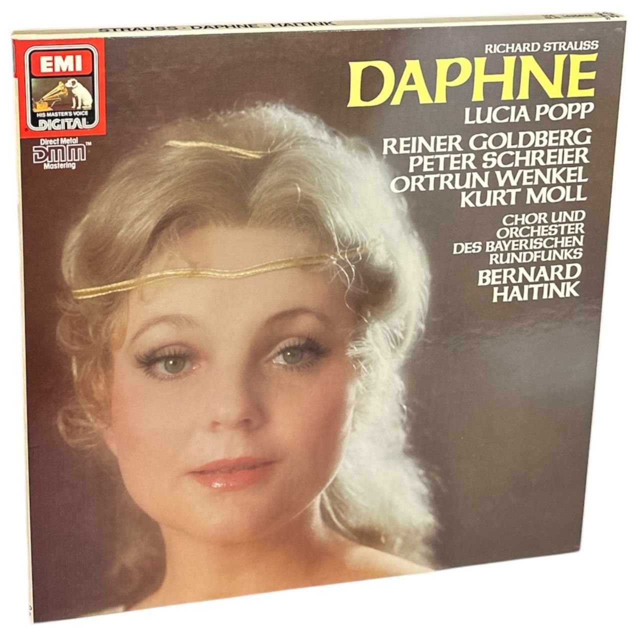 BERNARD HAITINK conducts the CHOR UND ORCHESTER DES BAYERISCHEN RUNDFUNKS Strauss: Daphne (1983 German double vinyl LP set, with Lucia Popp, Reiner Goldberg, Peter Schreier and Kurt Moll, picture box with 28-page libretto booklet. The box shows minimal wear and the vinyl is Near Mint)