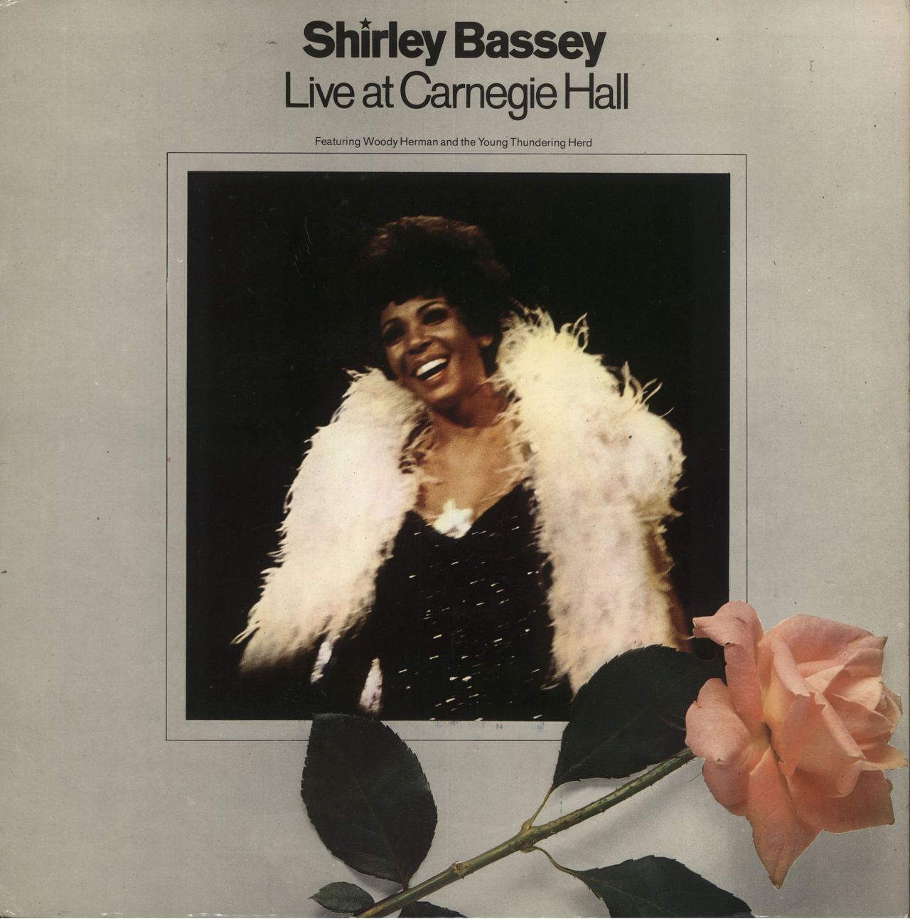 SHIRLEY BASSEY Live At Carnegie Hall (1973 UK 17-track double vinyl LP featuring a collection of tracks recorded live during two performances on 11th & 12th May 1973 at New York City's legendary Carnegie Hall and featuring appearances from Woody Herman and the Young Thundering Herd. The front-laminated gatefold picture sleeve has just a little laminate wear to the edges and while the 'integral' picture booklet remains attached, while the two vinyl discs look barely played USD301/2)