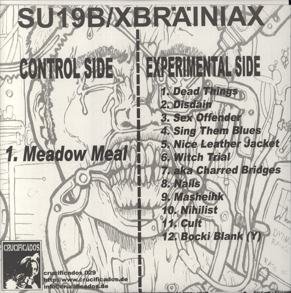 SU19B / XBRAINIAX Su19b / xBrainiax (2007 German 13-track 7" split EP, from the American Powerviolence band and the Japanese Grindcore band. Pressed on White and Red Splatter Vinyl Wrap-around picture sleeve with lyrics and credits printed on the inside CRUCIFICADOS030)