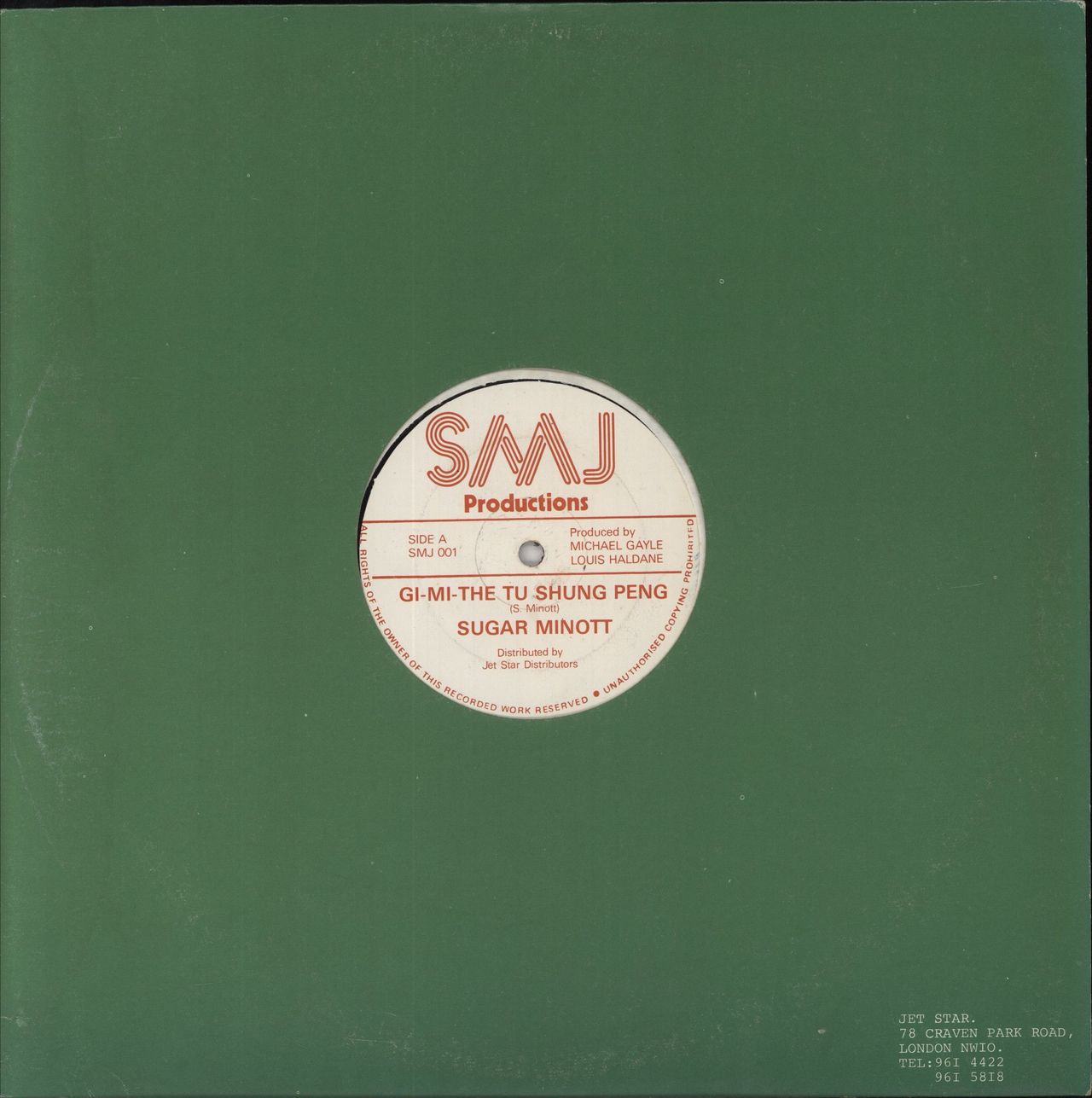 SUGAR MINOTT Gi-Mi-The Tu Shung Peng (80s UK 12" single, also featuring Tu Shung Peng (Version), die cut card sleeve SMJ001)