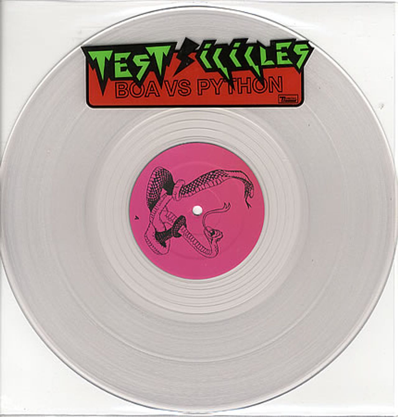TEST ICICLES Boa Vs Python (2005 US Limited Edition 4-track 12" single pressed on Clear Vinyl and featuring 'All You Need Is Blood' and the exclusive recordings 'LMNO Hoes' and 'What's In The Box', presented in stickered clear PVC sleeve)