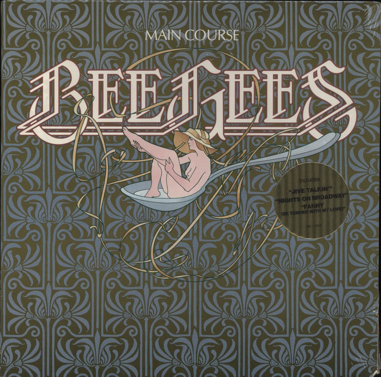 THE BEE GEES Main Course (1977 US issue of the 1975 10-track LP including Nights On Broadway, Jive Talkin' & Fanny [Be Tender With My Love], picture sleeve with small deletion cut corner. The sleeve is still in the open shrinkwrap with the gold song hype sticker attached & the vinyl appears unplayed RS-1-3024)