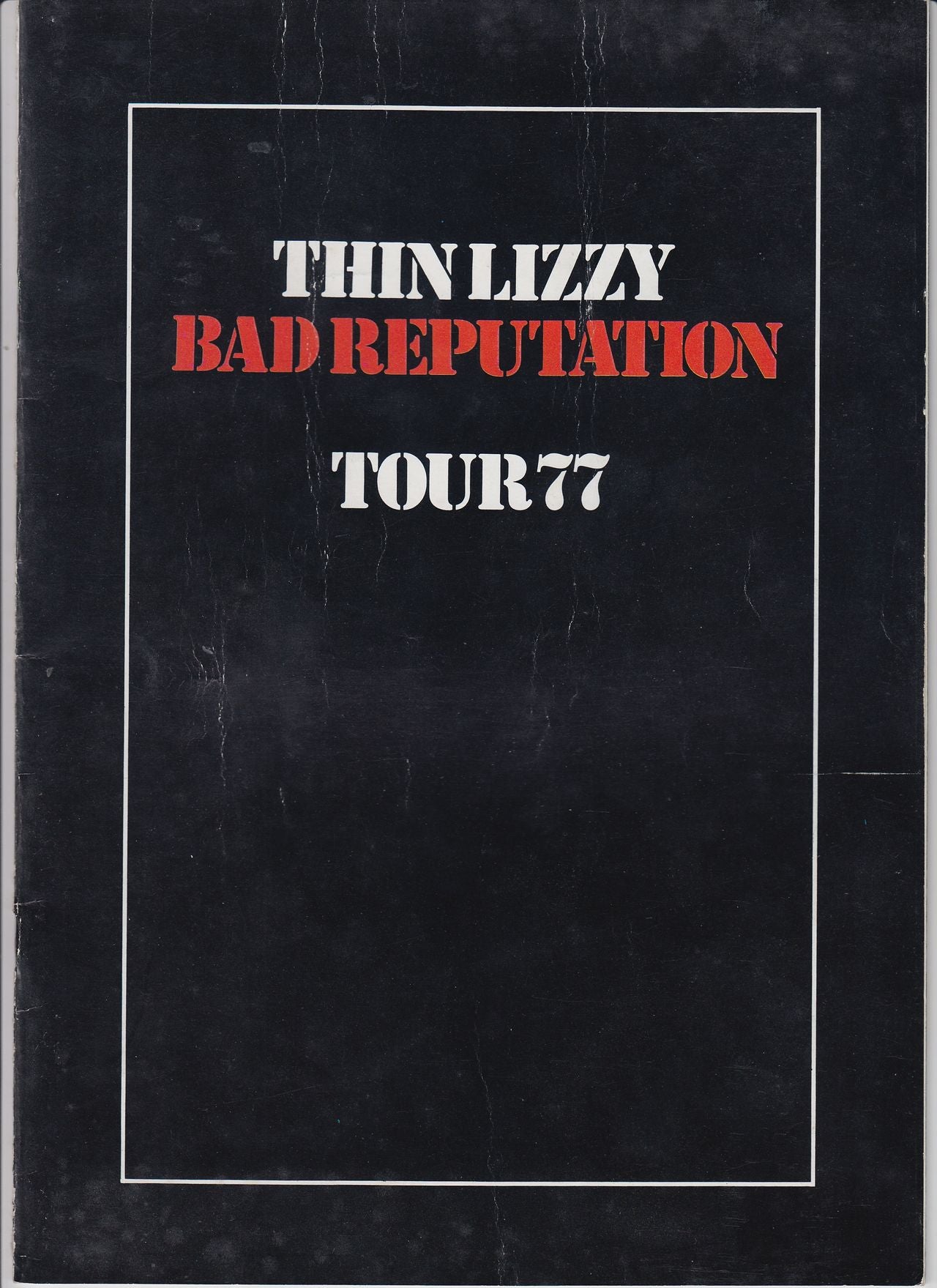 THIN LIZZY Bad Reputation Tour 77 (Official 1977 UK 20-page tour programme including tour dates, '77 Useless Facts About Thin Lizzy', Vertigo back catelogue advertisement and lots a great photographs including a 'live' double-page colour picture on Phil on his knees with his guitar. This cover has some minor wear with light creases to spine whilst the inner pages are superb)