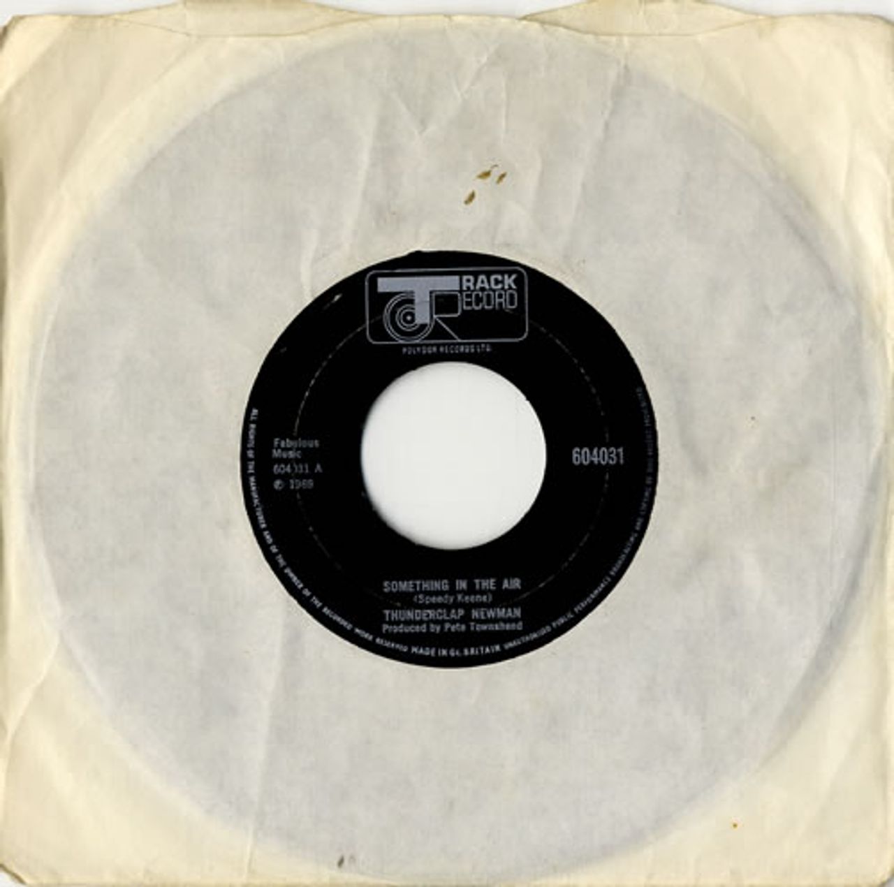THUNDERCLAP NEWMAN Something In The Air (Classic 1969 UK wide-centred 7" vinyl single produced by Pete Townshend, also including Wilhelmina, plain die cut paper sleeve)