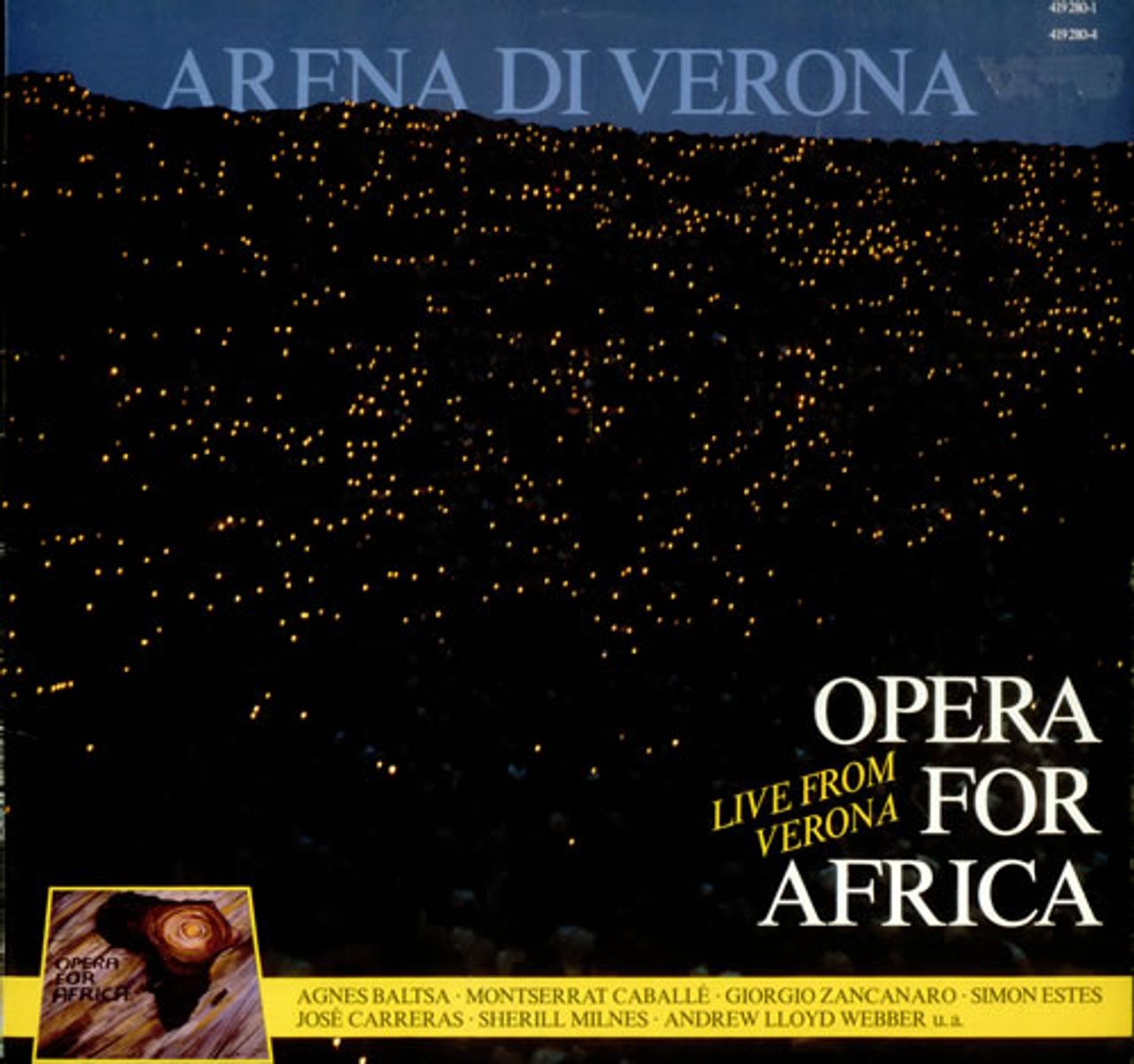 VARIOUS-OPERA Opera for Africa (1985 Austrian Austro-Mechana label stereo vinyl LP. A collection of works by Giordano, Bizet, Belllini, Lloyd-Weber, Bernstein, Verdi, Rossini amd Mozart including performances by Jose Carreras, Monserrat Caballe,Sarah Brightman and Sherill Milnes, picture sleeve with extensive liner notes. The sleeve shows minimal wear and the vinyl is Near Mint)
